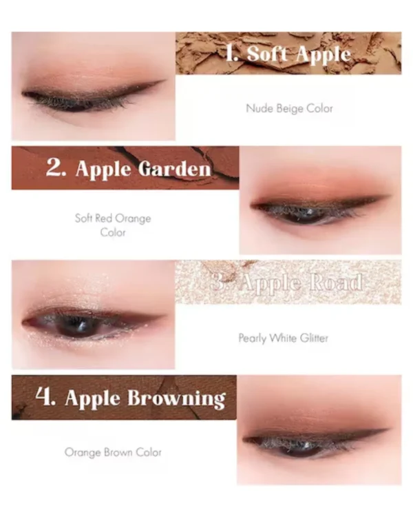 Apply base shade all over eyelid using a brush or fingertip. Use medium tone to add depth to the crease, shimmer on the center or inner corner for sparkle, and the darkest shade to define the lash line or outer V.