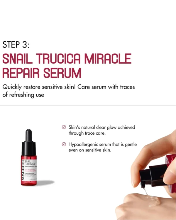 Snail Truecica Miracle Repair Serum (10 ml) – A concentrated serum that fades dark spots, calms inflammation, and supports skin regeneration.