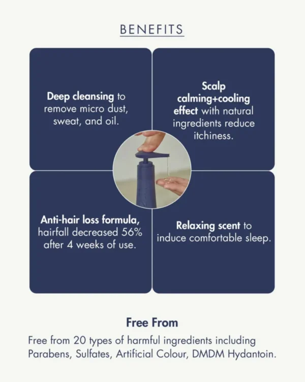 Its lightweight yet creamy formula gently purifies the scalp of daily buildup and excess sebum while locking in moisture. With consistent use, it helps repair damaged cuticles, reduce breakage, and promote smoother, healthier-looking hair by morning.